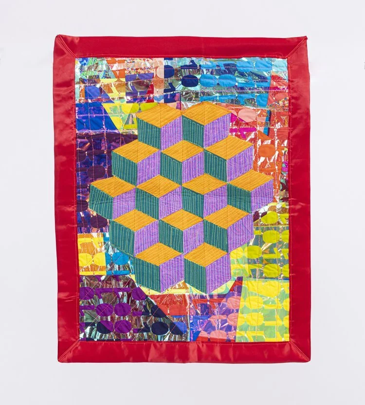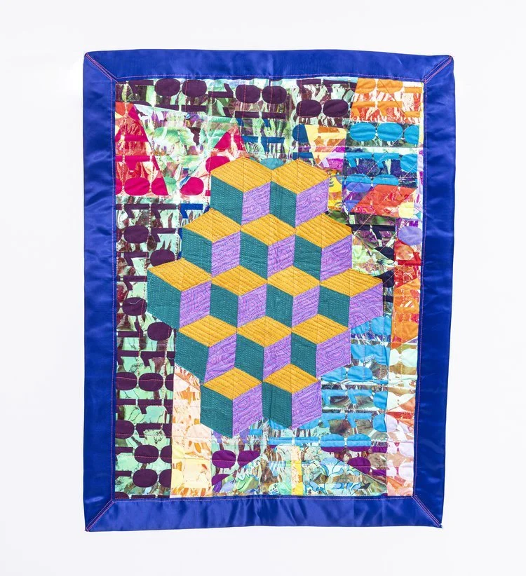 Reflecting on the 2016 and 2020 elections, this quilt looks at the role platforms — digital (especially social media) or analog — have on classism and segregated society, and their tendency to make it impossible to see each other eye to eye.